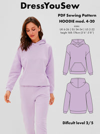 Cozy Hoodie with front Kangaroo pocket, figured neckline and a hood, sewing digital PDF pattern. Skill Level 2/5.