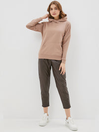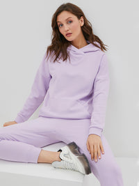 Suggested fabrics: Dense knitted fabrics such as Footer three-thread, Footer two-thread, Fleece, Ponte, Scuba, Sweatshirt Fleece, Double Knit, Jersey. For cuffs and waistband use a rib knit. The hoodie in the photo is made of three-thread cotton footer.