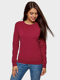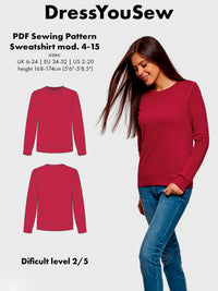 Suggested fabrics: Dense knitted fabrics such as footer three-thread, two-thread, fleece, cotton or blended knit fabric, or jersey. For cuffs and waistband use a rib knit. The sweatshirt shown in the photograph is made from a viscose jersey.