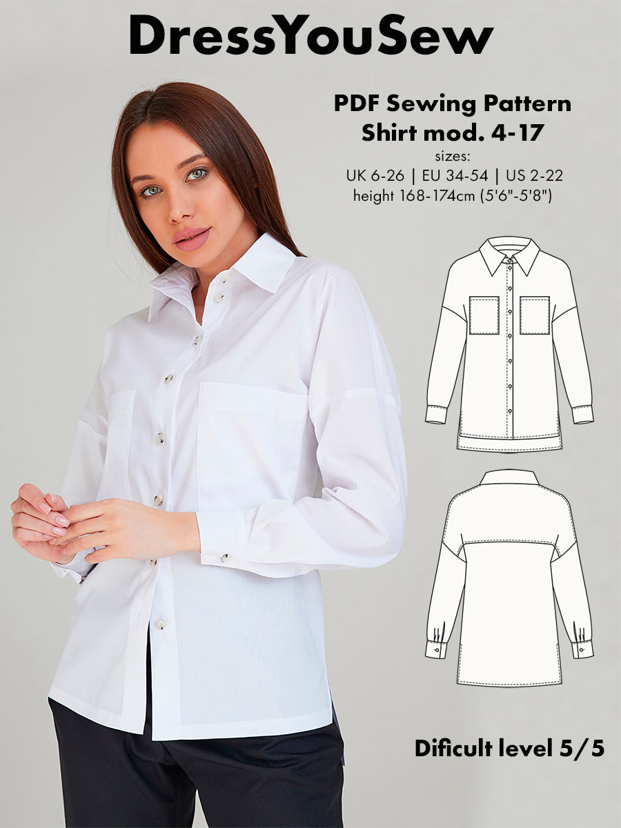 Sewing digital PDF pattern comes in sizes UK 6-26, EU 34-54, US 2-22, height 168-174cm (5'6"-5'8.5")Please check the size charts and finished garment measurements.