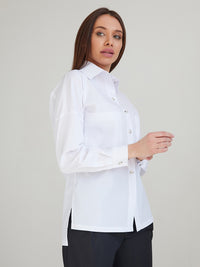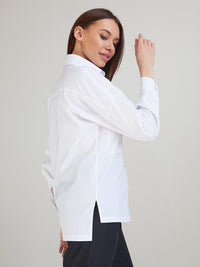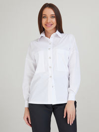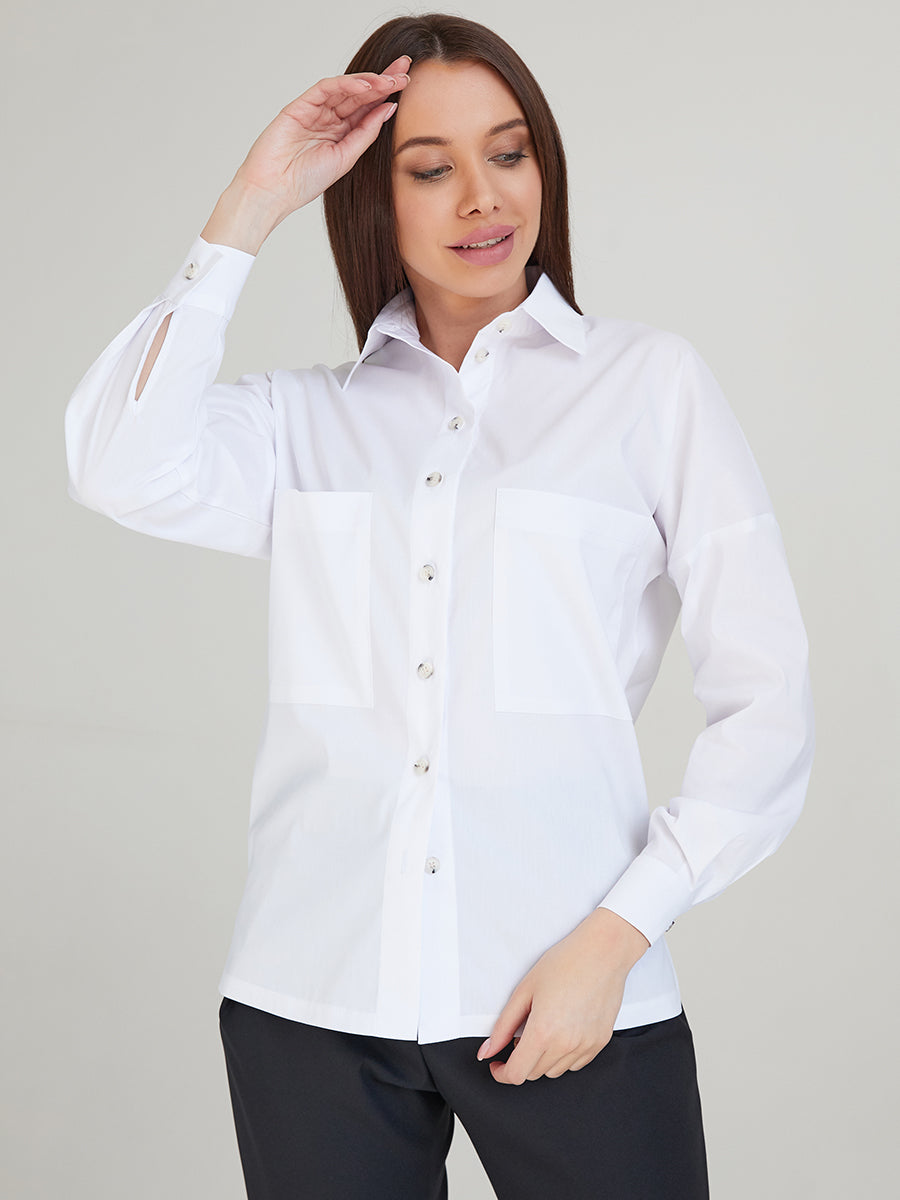 Women's shirt with dropped shoulders. Patch pockets with side openings. Back yoke.