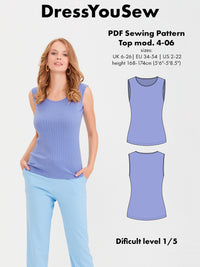 Suggested fabrics: Knit cotton or blended fabric for knitted top: Any knitted fabrics such as footer two-thread, cotton or viscose knit fabric, jersey, polyester knit fabric.