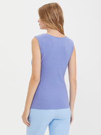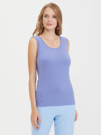 Women's basic knit top. Round neckline. Neckline trimmed with a band. Fitted cut.