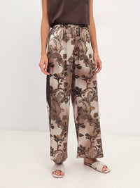 Wide-leg pants with side stripes. Elastic waistband. No pockets, no closure. Skill Level 2/5.