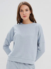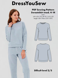 Oversized sweatshirt with a waistband. Drop-shoulder sleeves with cuffs. Skill Level 2/5.