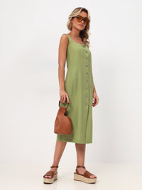 Suggested fabrics: Any lightweight summer dress fabric, excluding highly stretchy knits. The dress in the photo is made of a blend of linen fabric.