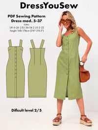 Sewing digital PDF pattern comes in sizes UK 6-26, EU 34-54, US 2-22, height 168-174cm (5'6"-5'8.5"). Please check the size charts and finished garment measurements.