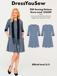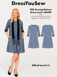 Sewing digital PDF pattern comes in sizes UK 6-26, EU 34-54, US 2-22, height 168-174cm (5'6"-5'8.5"). Please check the size charts and finished garment measurements.